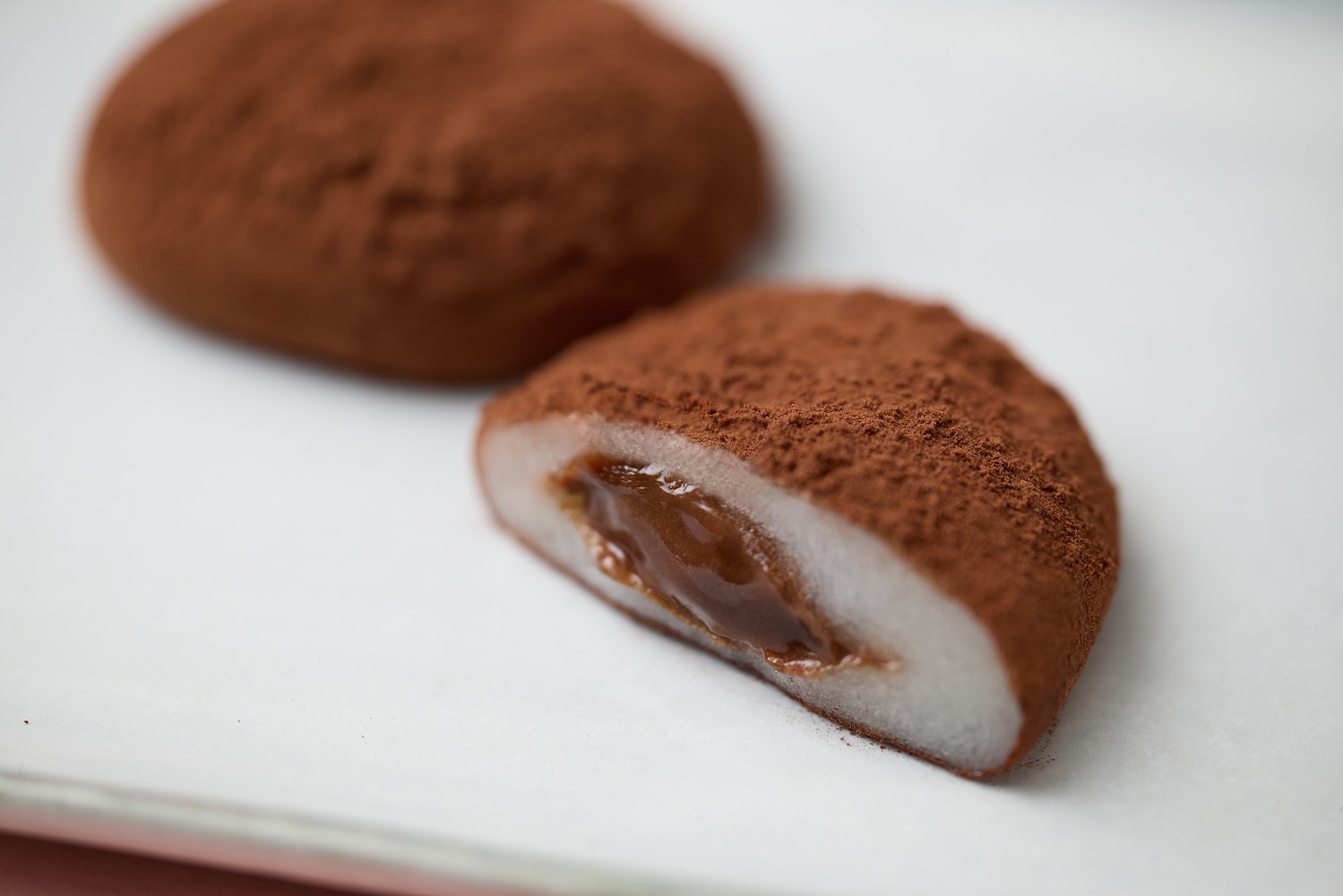 自社製粉のもち粉を使用したくちどけなめらかなおもちから、コク深くなめらかな濃厚生チョコレートがあふれだす、芽吹き屋ならではの特別な和スイーツです。